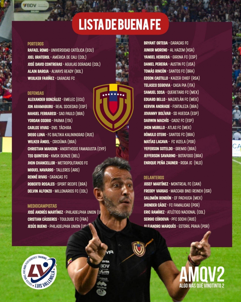 Danh sách sơ bộ ĐT Venezuela tham dự Copa America 2024 (Ảnh: Algo más que Vinotinto).