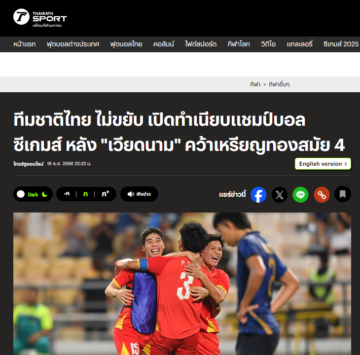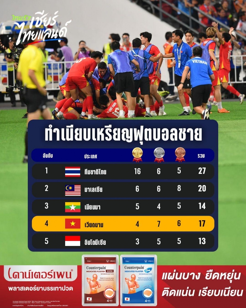 Báo Thái nhấn mạnh rằng, với chức vô địch SEA Games 33, bóng đá nam Việt Nam đã chính thức chạm mốc 4 Huy chương Vàng SEA Games, sau các lần đăng quang vào các năm 1959, 2019, 2021 và nay là 2025. Đây được xem là một cột mốc đáng chú ý trong lịch sử bóng đá Việt Nam, nhất là khi chức vô địch mới nhất được giành ngay trên sân Rajamangala, “thánh địa” của bóng đá Thái Lan.