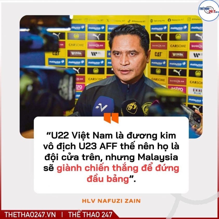 Tờ BHarian cho biết, dù sở hữu lợi thế nhất định về hiệu số, Malaysia vẫn không được phép chủ quan. HLV Nafuzi công khai đánh giá cao sức mạnh của Việt Nam khi khẳng định: “Tôi đã xem các trận đấu của Việt Nam và họ cũng là nhà vô địch AFF U23”. Với ông, danh hiệu này không chỉ thể hiện chất lượng đội hình mà còn chứng minh sự ổn định vượt trội của U22 Việt Nam.