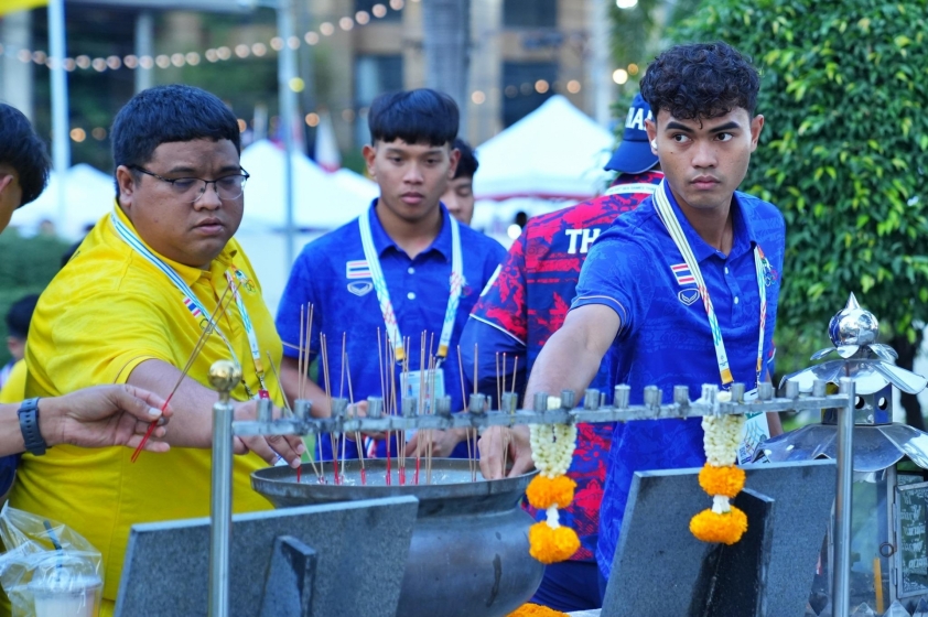 Trước trận chung kết bóng đá nam SEA Games 33, Liên đoàn Bóng đá Thái Lan (FA Thailand) gây chú ý khi đăng tải hình ảnh đội U22 làm lễ cầu nguyện trước sân Rajamangala. Đây được xem là nghi thức tâm linh quen thuộc, gửi gắm niềm tin vào các yếu tố thiêng liêng với hy vọng mang lại may mắn trước cuộc so tài quyết định với U22 Việt Nam.