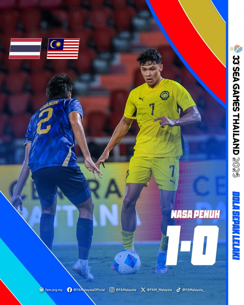 Gặp Thái Lan, U22 Malaysia bị thủng lưới rất sớm từ bàn thắng trên chấm đá phạt. Sau đó, Malaysia chỉ còn chơi với 10 người khi Yusuf nhận thẻ vàng thứ 2 rời sân ở phút 15. Dù gặp nhiều lợi thế, U22 Malaysia vẫn chơi kiên cường và có nhiều cơ hội ghi bàn. Đáng tiếc, họ vẫn để thua U22 Thái Lan với tỷ số tối thiểu và lỡ hẹn với trận chung kết SEA Games 33.