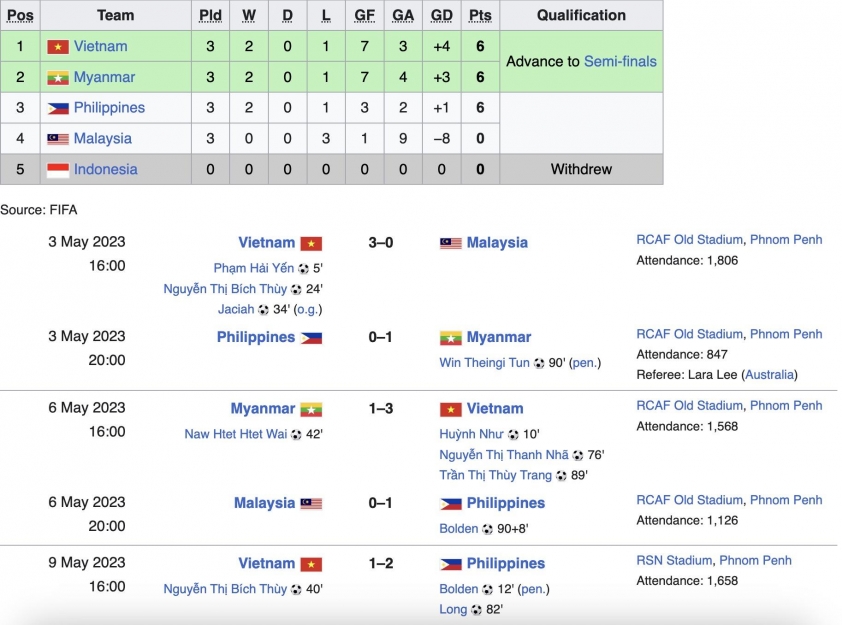 Tại SEA Games 32, ĐT nữ Việt Nam cũng đã từng để thua Philippines ngay từ vòng bảng. Năm đó, thầy trò HLV Mai Đức Chung cũng thắng Malaysia dễ dàng ở lượt trận đầu tiên, thắng Myanmar 3-1 ở lượt trận thứ 2 nhưng sau đó lại thua Philippines với tỷ số 1-2.