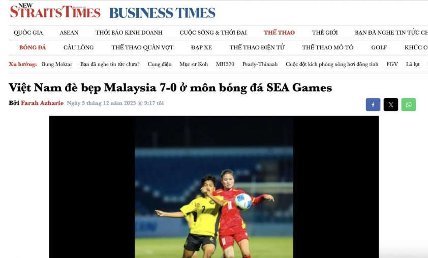 Chiến thắng 7-0 của ĐT nữ Việt Nam trước Malaysia khiến truyền thông khu vực đặc biệt lưu tâm.