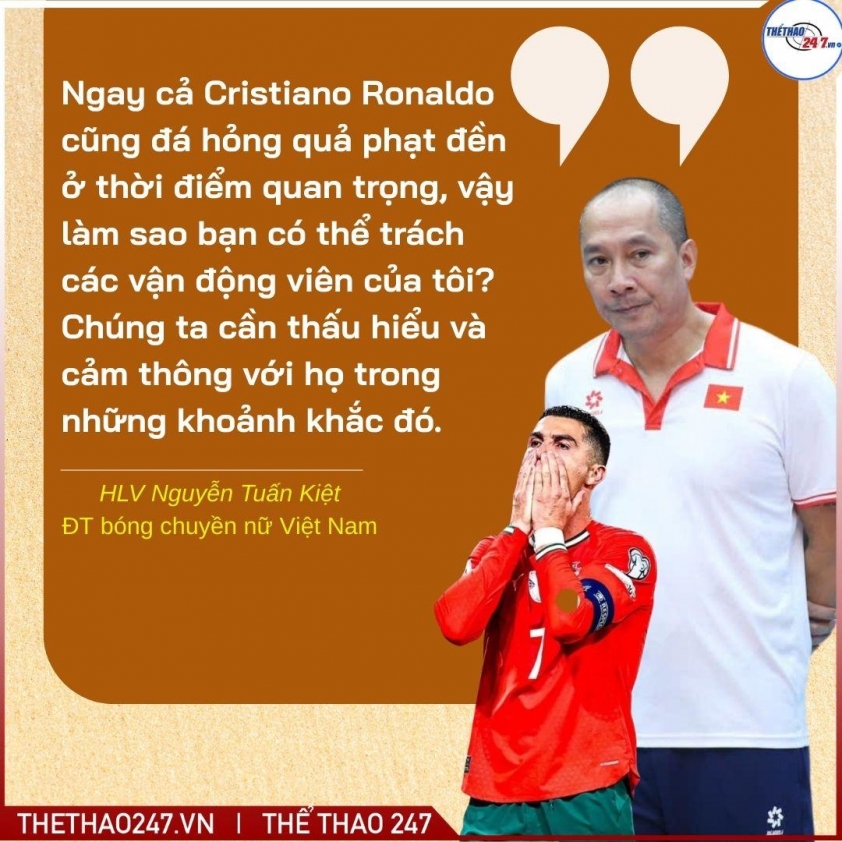 Đáng chú ý, nhà cầm quân của Việt Nam còn ví von các học trò của mình đầy thú vị: "Ngay cả Cristiano Ronaldo cũng đá hỏng quả phạt đền ở thời điểm quan trọng, vậy làm sao bạn có thể trách các vận động viên của tôi? Chúng ta cần thấu hiểu và cảm thông với họ trong những khoảnh khắc đó".