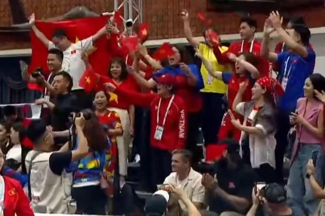 Thêm nữa, chiến thắng ngày hôm nay của đoàn TTVN còn mang nhiều ý nghĩa hơn khi nhà thi đấu chứng kiến rất nhiều những CĐV Việt Nam có mặt để cổ vũ cho các đại diện thể thao nước nhà.