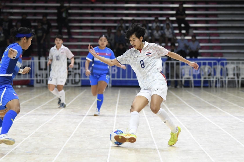 Trận tranh hạng ba môn futsal nữ diễn ra tại BTU Hall, Đại học Bangkok Thonburi. Trước đó, ĐT futsal nữ Thái Lan dừng bước ở bán kết sau khi thua Indonesia trên loạt luân lưu, còn Philippines không thể vượt qua Việt Nam. Ở trận đấu này, HLV Thanathon Santanaprasit tung ra đội hình xuất phát gồm thủ môn Nuengruthai Sornhong cùng các cầu thủ Jenjira Bubpha, Nattamon Atklang, Saowapha Tranga và Darika Pianpailun.
