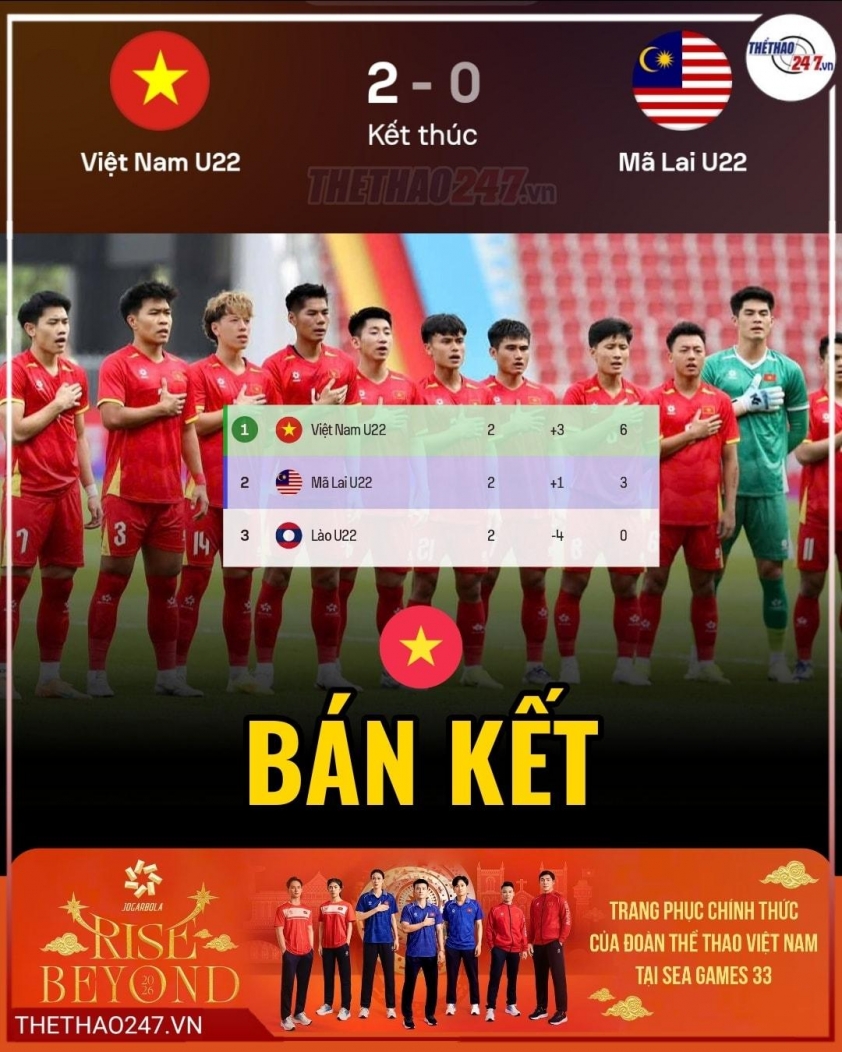 U22 Việt Nam đã xuất sắc giành vé vào bán kết SEA Games 33 sau khi đánh bại Malaysia ở lượt đấu cuối tại bảng B. Kết quả này không chỉ giúp đoàn quân của HLV Kim Sang Sik góp mặt tại vòng 4 đội mạnh nhất, mà còn đòi lại ngôi đầu bảng từ tay đối thủ, qua đó phần nào dễ thở hơn ở vòng đấu tới.