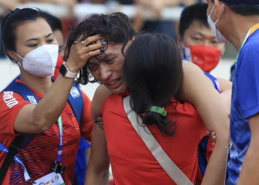 Hai năm sau, tại SEA Games 31 trên sân nhà, Nhật Hoàng lại khóc. Nhưng đó không còn là nước mắt chiến thắng mà là sự đau đớn, tiếc nuối. Chấn thương gân khoeo tái phát khiến anh chỉ về đích thứ 5 ở nội dung sở trường.