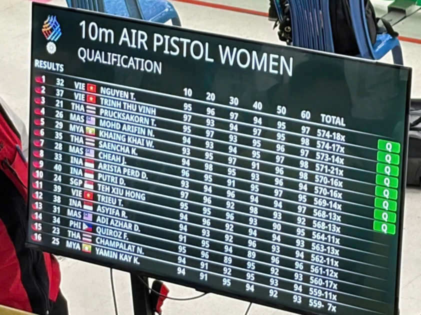 Sáng 14/12, 3 xạ thủ là Nguyễn Thùy Trang, Trịnh Thu Vinh và Triệu Thị Hoa Hồng tham dự nội dung 10m súng ngắn hơi đồng đội nữ, đồng thời thành tích cá nhân cũng sẽ tính điểm để làm vòng loại cho vòng chung kết. Đây là nội dung trọng điểm của đội tuyển bắn súng Việt Nam tại SEA Games 33.