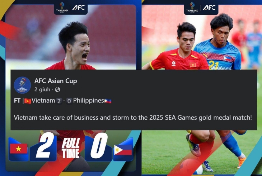 Ngay sau trận đấu, fanpage chính thức của Liên đoàn Bóng đá châu Á đã đăng tải dòng trạng thái gây chú ý: “U22 Việt Nam hoàn thành nhiệm vụ và thẳng tiến vào trận tranh HCV SEA Games 2025!”. Thông điệp ngắn gọn nhưng đầy sức nặng này nhanh chóng nhận được sự quan tâm lớn từ người hâm mộ khu vực.