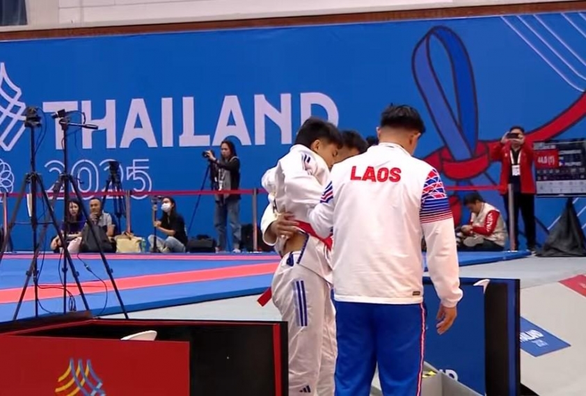 Võ sĩ Cấn Văn Thắng gây ấn tượng mạnh tại SEA Games 33 khi đánh gục đối thủ Lào bằng đòn bẻ chân (Ankle Lock), đồng thời ghi điểm tuyệt đối với hành động thượng võ.