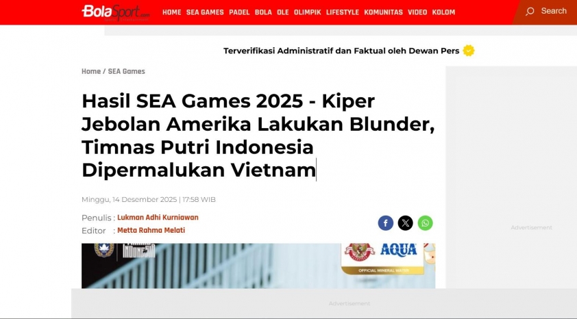 Chứng kiến thất bại nặng nề này, truyền thông Indonesia đã không giấu nổi sự thất vọng. Tờ Bola Sport giật tít đầy gay gắt: “Thủ môn được đào tạo tại Mỹ mắc sai lầm, đội tuyển nữ quốc gia Indonesia bị Việt Nam làm bẽ mặt”, trong đó chỉ trích trực tiếp những sai sót nơi hàng phòng ngự và vai trò của thủ môn Indonesia trước sức ép liên tục từ phía Việt Nam.