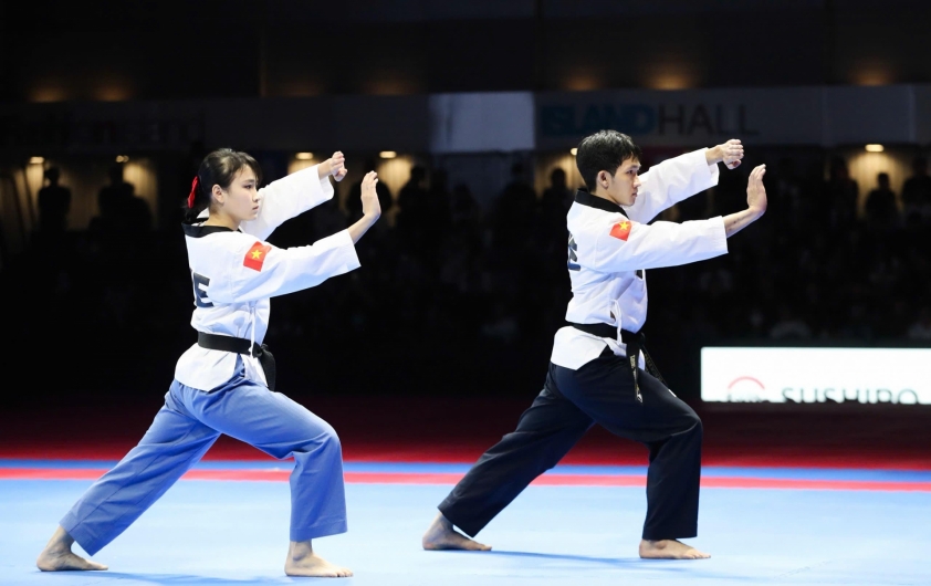Cặp võ sĩ Nguyễn Thị Kim Hà và Nguyễn Trọng Phúc sẽ thi đấu trận chung kết nội dung quyền biểu diễn đôi nam - nữ tiêu chuẩn môn Taekwondo tại SEA Games 33 sau khi đánh bại đội chủ nhà.
