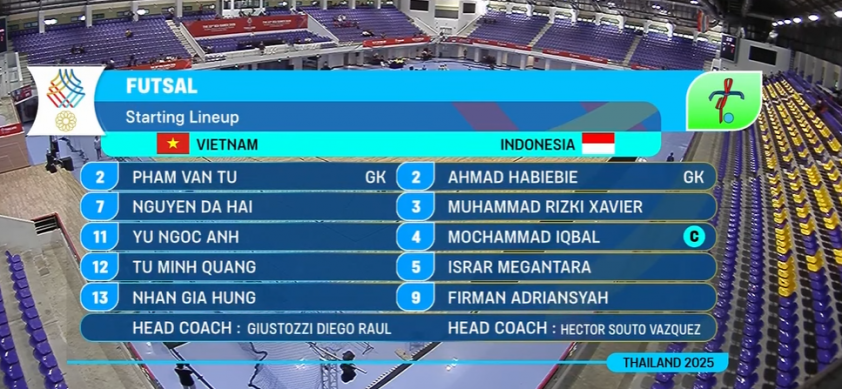 Tường thuật trực tiếp trận đấu giữa ĐT futsal Việt Nam và Indonesia ở lượt trận thứ hai môn futsal nam SEA Games 33.