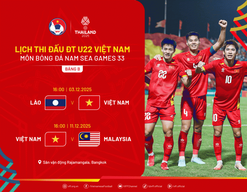 Về phía đội tuyển U22 Việt Nam, thầy trò HLV Kim Sang Sik sẽ di chuyển từ Thành phố Hồ Chí Minh sang Bangkok vào sáng 1/12. LĐBĐ Việt Nam (VFF) cũng đã chủ động lên phương án nhằm bảo đảm sự chuẩn bị tốt nhất cho đội tuyển. Bộ phận tiền trạm của VFF sẽ có mặt tại Bangkok từ ngày 30/11 để tiến hành kiểm tra điều kiện khách sạn, sân tập, sân thi đấu và các yêu cầu hậu cần liên quan, qua đó hỗ trợ tối đa cho thầy trò HLV Kim Sang Sik trong quá trình thi đấu tại SEA Games 33.