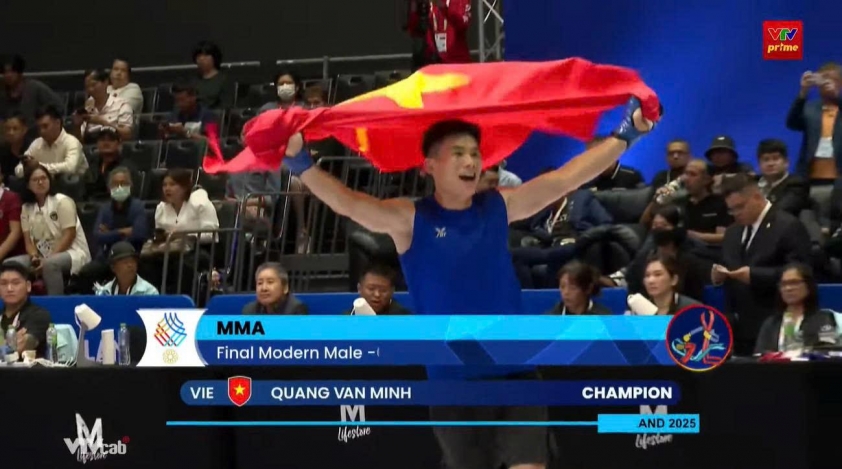 Trong ngày thi đấu 11/12, võ sĩ Quàng Văn Minh xuất sắc giành tấm HCV đầu tiên cho đội tuyển Võ thuật tổng hợp (MMA) Việt Nam tại SEA Games 33.