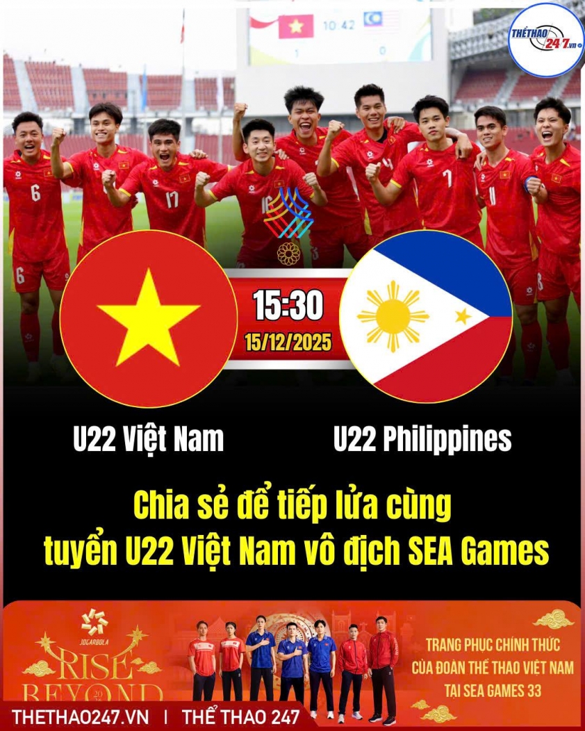 Sau khi vượt qua vòng bảng, U22 Việt Nam sẽ gặp U22 Philippines trong trận đấu quan trọng tại bán kết SEA Games 33. Đây là cuộc đối đầu đầy thử thách, khi U22 Philippines đang có phong độ rất tốt, thể hiện sự tiến bộ vượt bậc từ giải U23 Đông Nam Á. Với chiến thắng 2-0 trước U22 Myanmar và 1-0 trước U22 Indonesia, đội bóng của HLV Garrath James đã chứng tỏ mình là một đối thủ rất nguy hiểm.
