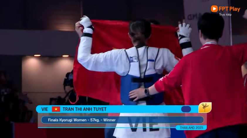 Ánh Tuyết mang về thêm một tấm HCV cho TTVN ở hạng cân 57kg nữ sau khi đánh bại võ sĩ chủ nhà Thái Lan.