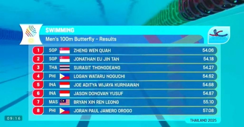 9h17: Bơi - Kết quả vòng loại nội dung 100m bướm Nam