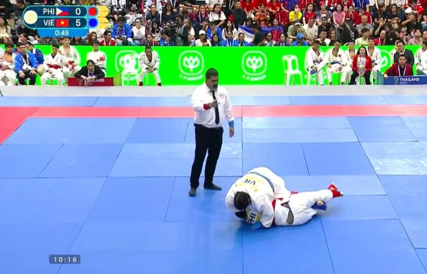 10h15: Đội tuyển Ju Jitsu Việt Nam đang chơi rất tốt, chúng ta đang áp đảo trước Philippines.