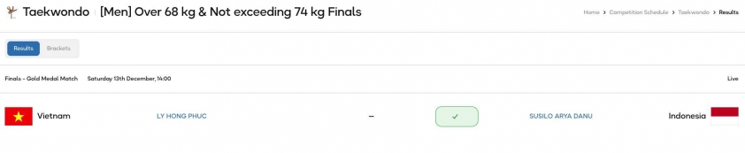 Lý Hồng Phúc không thể thắng đối thủ từ Indonesia môn Taekwondo hạng cân Trên 68 kg & dưới 74 kg Nam, qua đó mang về thêm tấm HCV cho đoàn thể thao Việt Nam.