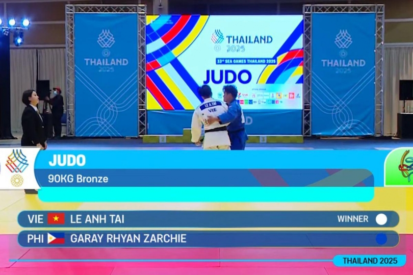 Ở hạng cân 90kg, Lê Anh Tài vượt qua đối thủ Philippines và giành tấm HCĐ.
