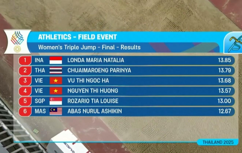 Vũ Thị Ngọc Hà mang về tấm HCĐ nội dung Nhảy ba bước Nữ trong khi Nguyễn Thị Hường chỉ đứng thứ 4.