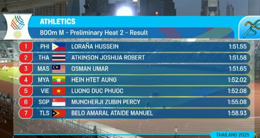 Chỉ đứng thứ 5 ở vòng loại lượt chạy thứ 2 nhưng Lương Đức Phước vẫn may mắn vừa đủ đứng thứ 8 ở vòng loại để vào tranh tài ở chung kết nội dung 800m dù anh đang là đương kim HCB nội dung này.