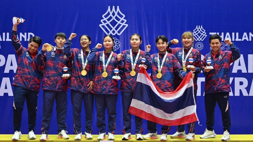 Ngày 11/12, làng thể thao Thái Lan tiếp tục rộn ràng sau chiến tích lịch sử của đội cầu mây lồng nữ Thái Lan tại SEA Games 33. Trong trận chung kết diễn ra tại Nhà thi đấu 4.000 chỗ của Trung tâm thể thao thành phố Nakhon Pathom, đội nữ Thái Lan không chỉ bảo vệ thành công tấm HCV mà còn thiết lập kỷ lục thế giới mới với 1.000 điểm cột mốc chưa từng có trong lịch sử môn cầu mây lồng quốc tế.