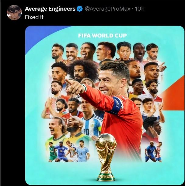 Trong tấm poster này, ngôi sao đại diện cho ĐT Bồ Đào Nha là Bruno Fernandes, người chỉ được sắp xếp ở phía góc bên trái, không được xếp ở trung tâm như Lionel Messi. Động thái này của FIFA đã khiến các CĐV đã tỏ ra vô cùng phẫn nộ khi Ronaldo bất ngờ bị bỏ sót.