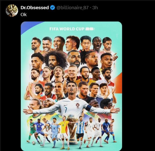 Trong tấm poster được đăng tải, hàng loạt những ngôi sao đình đám đều góp mặt, bao gồm Lionel Messi (Argentina), Kylian Mbappe (Pháp) hay Vinicius (Brazil),... Tuy nhiên, điều bất ngờ là sự vắng mặt của Cristiano Ronaldo.