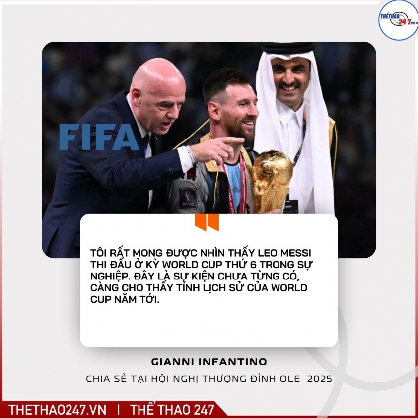 “Tôi rất mong được nhìn thấy Leo Messi thi đấu ở kỳ World Cup thứ 6 trong sự nghiệp. Đây là sự kiện chưa từng có, càng cho thấy tính lịch sử của World Cup năm tới."