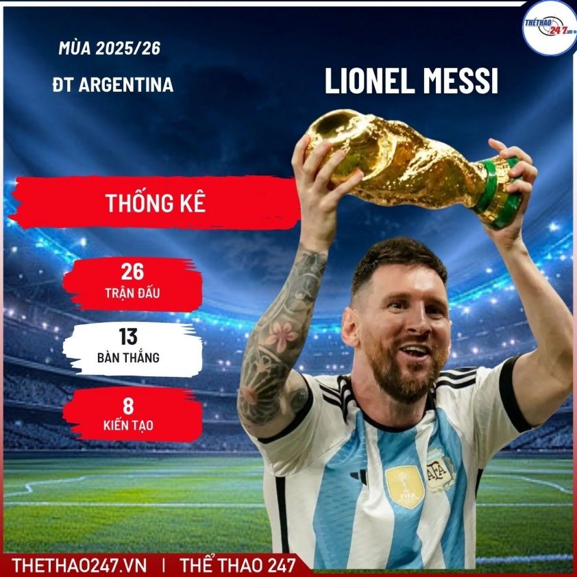 Sau chiến thắng tưng bừng trước Armenia, Bồ Đào Nha đã chính thức giành vé dự World Cup 2026. Giải đấu này được đặc biệt mong chờ, bởi nhiều khả năng đây sẽ là kỳ World Cup cuối cùng của cả Cristiano Ronaldo và Lionel Messi. Đáng chú ý, siêu sao người Argentina đang nắm lợi thế rõ rệt so với huyền thoại người Bồ Đào Nha trong cuộc đua phá một kỷ lục lịch sử tại World Cup, điều có thể giúp Messi củng cố thêm di sản đồ sộ của mình trong màu áo đội tuyển quốc gia.