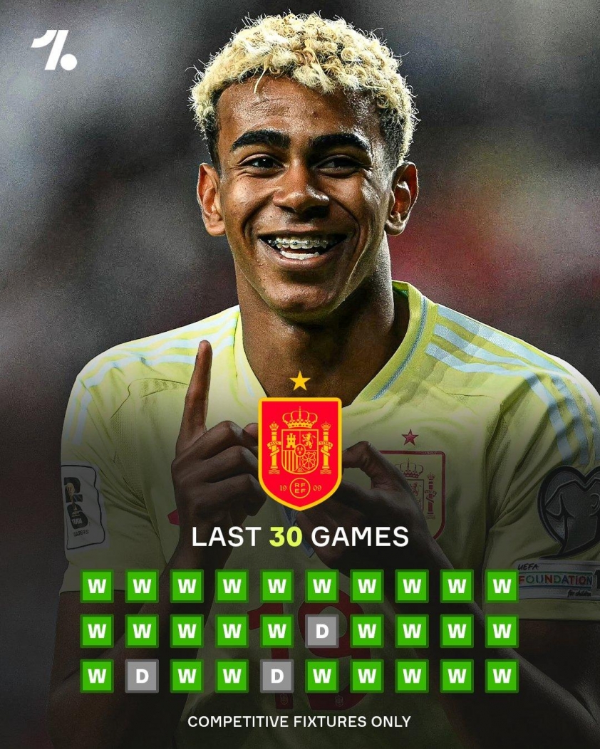 Giờ đây, thế hệ mới của La Roja đang sánh vai cùng những người tiền nhiệm huy hoàng đó. Lần gần nhất Tây Ban Nha nhận thất bại đã là từ tháng 3/2023 trước Scotland. Hơn 2 năm rưỡi qua, họ thắng 15 trận vòng loại và giành thêm 2 danh hiệu lớn: UEFA Nations League và EURO. Tính trong chuỗi này, Tây Ban Nha có 24 chiến thắng và 5 trận hòa, qua đó tiến sát kỷ lục châu Âu của Ý, đội bóng đang nắm giữ mốc 31 trận chính thức bất bại.
